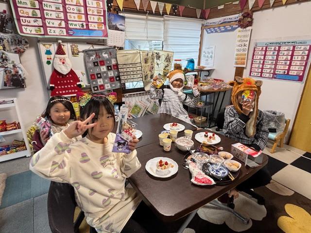 2024 12 Christmas Lessonレッツ恒例のくじびきでの文房具のプレゼント&手作りケーキで楽しみました。 |